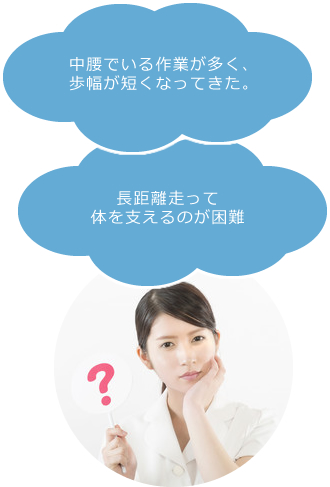 不安定姿勢や介護などいつもと違う姿勢で体を支えている方やデスクワークが多い方は、家に帰って体を支えていられなくてソファーが友達になってしまい、ますます支える筋肉がおちてしまうといった悪循環に陥りやすくなります。